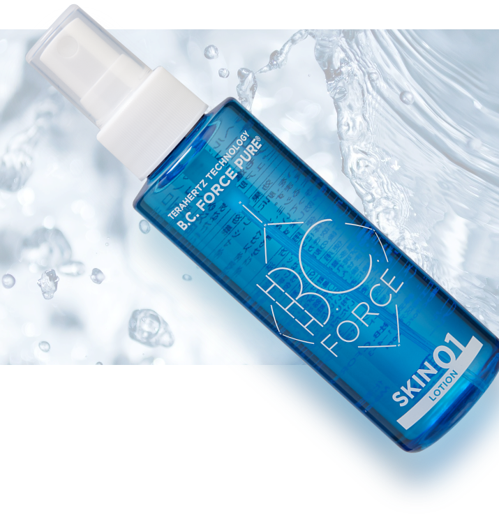 [B.C.フォース ピュア®]シリーズは含有ミネラルを皮膚表面に定着させ、生体に適した電気エネルギーとテラヘルツ波を自ら発生させることができます。これにより水の還元作用と活性酸素を除去するために必要な「SOD酵素(※)」に直接働きかけます。この独自のテラヘルツテクノロジーで肌にとって理想的なpH値を実現し、健康的で若々しい肌を手に入れることができます。
